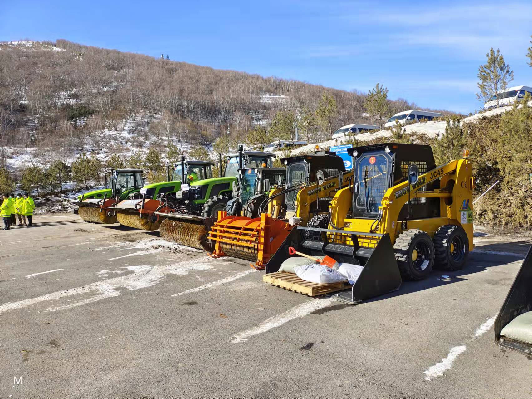 這次冬奧會(huì),泰安魯岳滑移裝載機(jī)JC45、JC60、JC100等十余臺(tái)設(shè)備配備斜角清掃機(jī)、拋雪機(jī)、推雪板等清雪附具抵達(dá)張家口成功交付。此外,泰安魯岳多臺(tái)配備斜角清掃器的拖拉機(jī)也加入到冬奧會(huì)道路安全保障工作中。